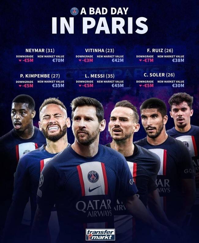 PSG에서 선수들 가치가 떨어졌다. PSG는 여전히 리그앙 절대 1강이고 유럽 최고의 전력을 가진 팀이나 선수들 나이가 들고 후반기 들어 경기력도 부진하고 결과도 아쉬워 타격을 입었다. 유럽축구연맹(UEFA) 챔피언스리그(UCL) 16강 탈락이 가장 뼈아팠다. 몸값이 대폭 떨어지진 않았어도 하락한 거 자체만으로 아쉬움으로 남았을 것이다.