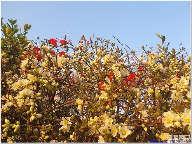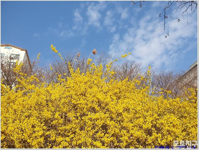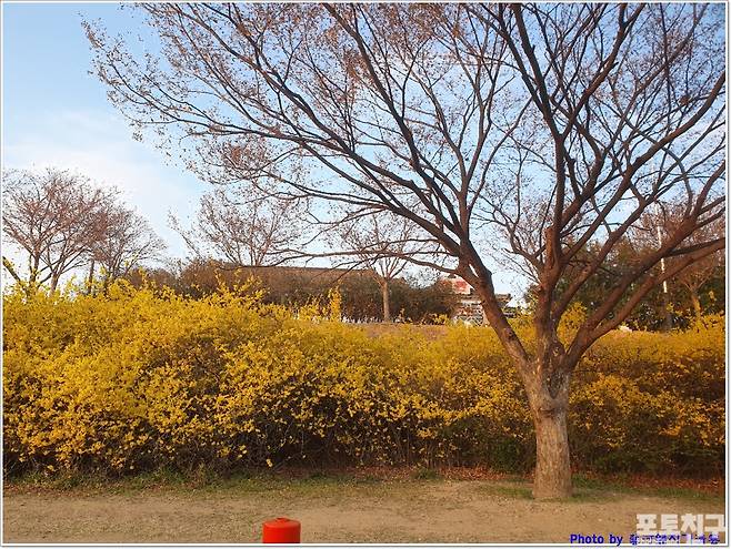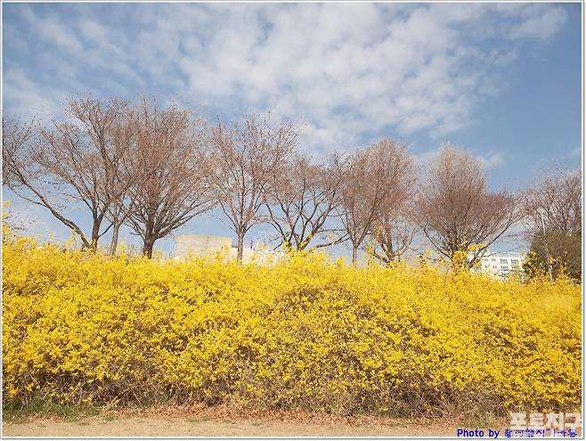 동촌 금호강 강변에는 개나리꽃과 명자꽃으로