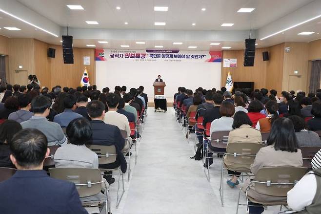 이날 직원 소통의 날 행사는 △업무 유공자 시상 △군수님 당부 말씀 △3분 자유발언 △공직자 안보 특강 순으로 진행됐다.