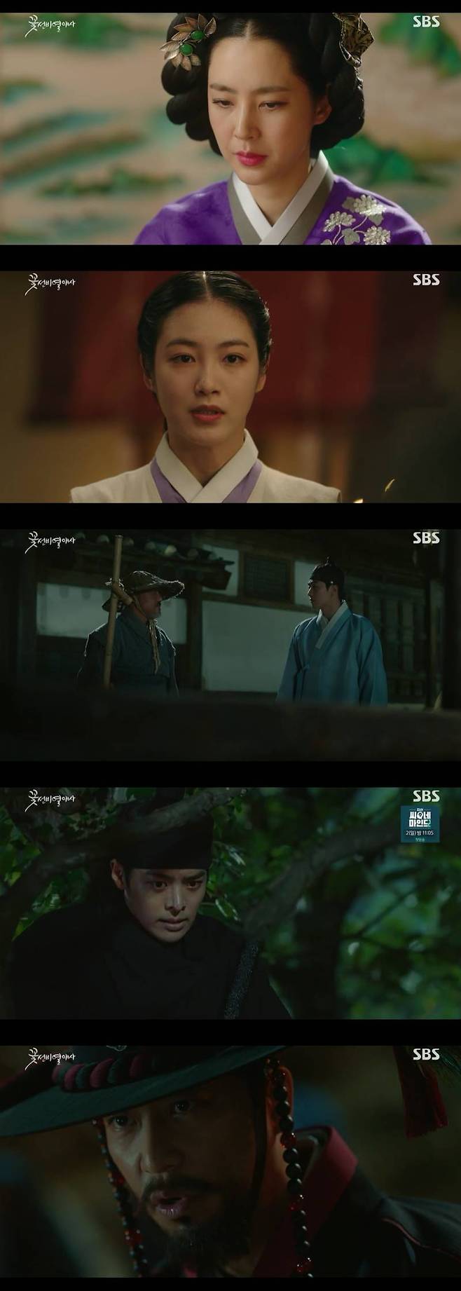 장 판관의 뒤에 임금이 있다고 추측하는 꽃선비들. 강산은 "그냥 포기해. 괜히 이설 찾겠다고 목숨까지 걸지 말고"라며 윤단오에게 말했지만, 윤단오는 "오라버니께서 뭐라고 하시든 전 이설 꼭 찾겠다"고 굽히지 않았다.