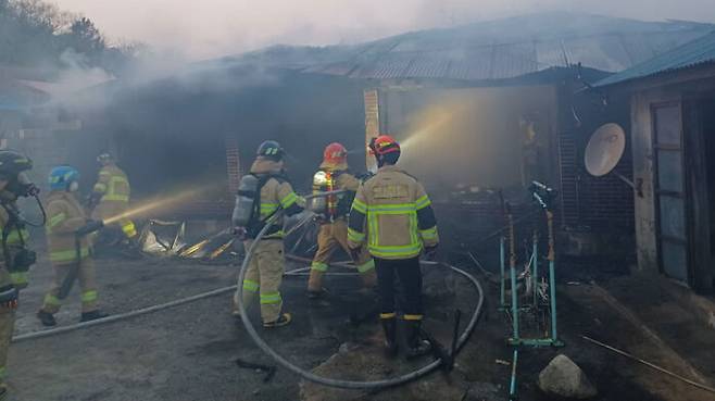 소방에 따르면 주택이 모두 타 1천4백만 원 상당의 재산피해도 발생했습니다.
