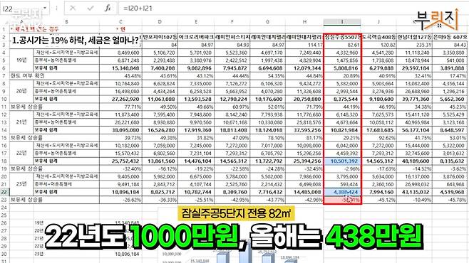 공시가격 하락 폭이 마이너스 19%면 많이 크긴 합니다. 근데 공시가격이 한 10억원에서 8억원 정도로 줄었다고 볼 수 있는데, 20% 하락했는데 세금은 40%까지 떨어진 케이스도 있는 것 같더라고요. 이게 20%, 40% 차이가 생긴 건 왜일까요?