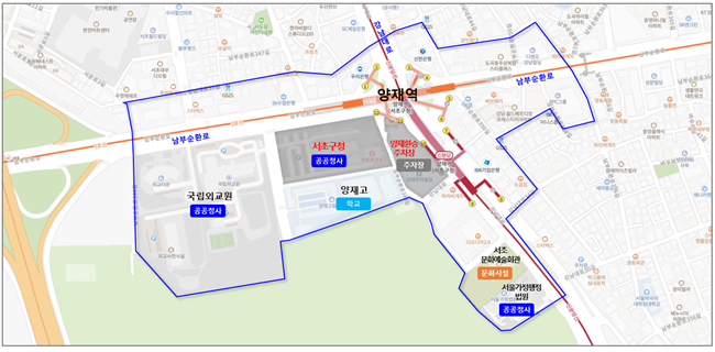 이에 서울시는 이번 용역을 통해 양재역 일대 공공청사, 문화시설, 환승 주차장 등 핵심 거점시설에 대한 연계 개발 방안을 선제적으로 마련한다는 방침이다. 아울러, 양재 중심부에 위치한 입지적 특성을 고려해 환승센터 등 주요 교통시설 간 원활한 연결을 통한 입체 복합개발 가이드라인도 세울 예정이다.
