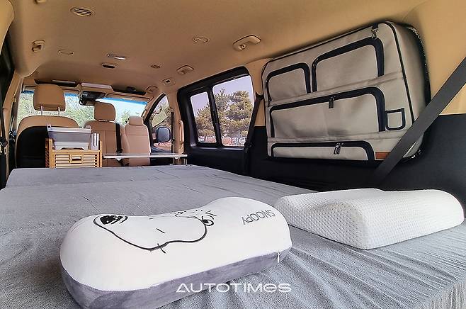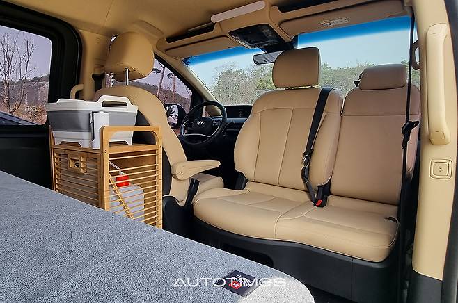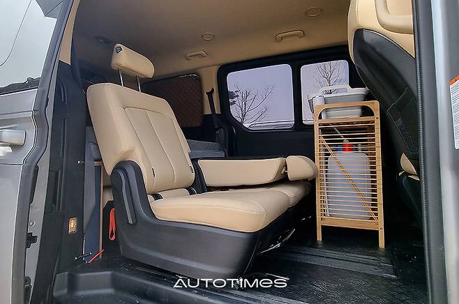 넓은 실내 공간은 스타리아가 존재하는 이유다. 투어러 9인승은 3+3+3 좌석 배열로, 2열과 3열을 접고 적재함 부분에 높이를 맞추는 구조물을 짜 넣으면 키 180㎝가 넘는 성인도 편히 누울 수 있는 침상 공간을 만들 수 있다. 구입 초기에는 적재 공간에 수납함을 넣고 접이식 평탄화 키트를 사용해 침상을 만들어 사용했지만 한계점은 명확했다. 높다란 바닥 면과 접은 시트의 높이마저 높아, 순정상태에서는 실내 좌식 생활이 어려웠다. 그래서 캠핑카 업체를 통해 2-3열 시트 높이를 낮추고 침상이 되어줄 적재함을 추가하는 등 세미 캠핑카로 활용하기 위한 구조변경을 진행했다.