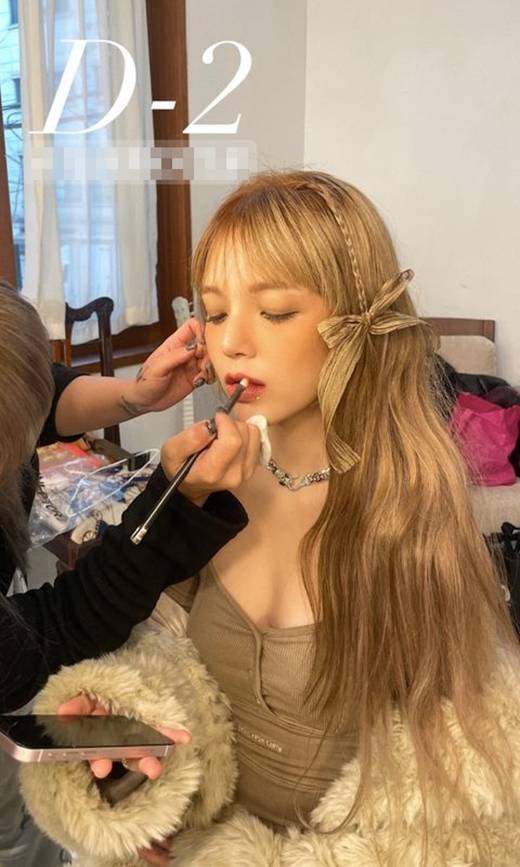 또 다른 사진은 화장 중인 모습이다. 화려한 메이크업으로 미모를 과시한 신지민이다. 사진 위에 'D-2'란 문구를 새겨넣은 신지민이다. 오는 30일 일본 도쿄에서 열리는 팬미팅을 가리킨 것이다.