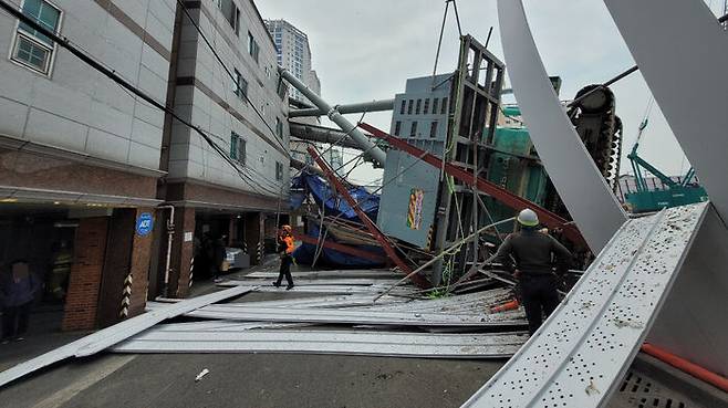 경찰은 추가 위험을 대비해 인근 현장을 통제하고 있으며 넘어진 항타기는 대형 크레인을 동원해 안전 조치될 예정입니다.