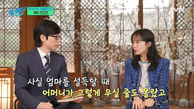 전도연은 "내 꿈이 현모양처였는데 그걸 깨는 경험이었다"라며 "엄마를 설득하는데 우셨다. 시집 못 가면 어떻게 하냐고 하셨다. 내가 시집가기 위해 배우를 하는 건 아니지 않냐고 얘기하고 설득했다"라고 말했다.