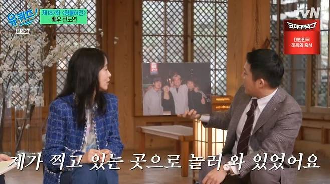 한편 전도연은 전설로 남은 ‘황조지’ 황정민 조승우 지진희 여행사진에 얽힌 비화도 전했다. 전도연은 “영화 ‘스캔들’ 때문에 지방촬영을 다닐 때였는데 마침 그곳에 와서 밥을 사줬다. 내가 동생이었지만 그때도 나는 전도연이라 대접을 했다”며 웃음 가득 비화를 전했다.