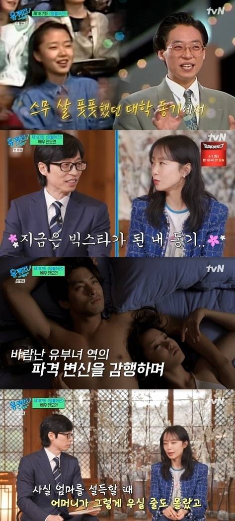 그러면서도 전도연은 "사실 엄마를 설득할 때 어머니가 그렇게 우실 줄 몰랐다. 시집 못 가면 어떡하냐고. 저 시집 잘 가려고 배우 한 거 아니지 않냐고 엄마를 설득했던 것 같다"고 당시를 떠올렸다.