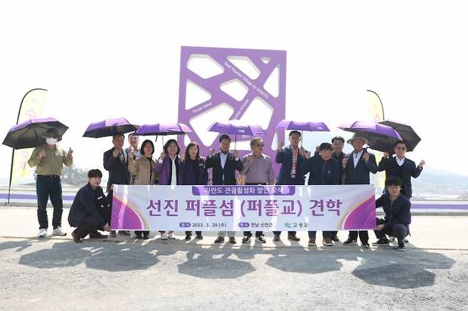 이날 이상근 군수와 최을석 고성군의회 의장, 투자유치자문관 등은 신안군청에서 관계자들의 성공사례 브리핑을 듣고, 신안군 안좌면 소곡리 반월·박지도 일원의 퍼플섬으로 이동해 섬과 섬을 잇는 보행교 퍼플브릿지와 꽃길을 걸었다.