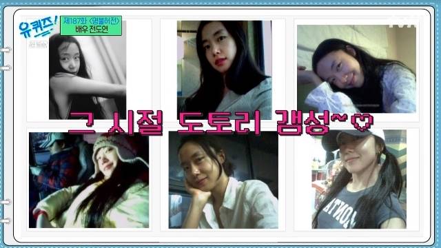 전도연은 해당 사진들도 거의 맨 얼굴로 찍은 거라며 "저는 제 모습을 되게 좋아한다고 했잖나. 어렸을 때 좀 되게 예뻤던 것 같다. 저는 자연스러운 걸 좋아한다"고 자부심을 뽐냈다. 그러면서도 해당 사진들이 일촌 공개인데 어떻게 퍼졌는지 의아해했고, 유재석과 조세호는 범인은 일촌이었을 거라고 얘기해줬다.