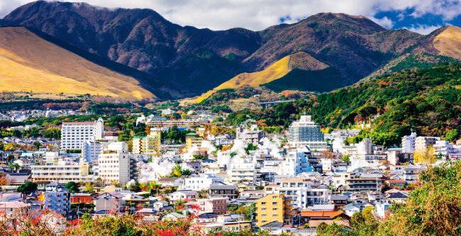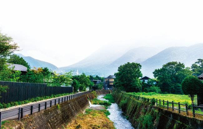 산을 낀 료칸 마을 유후인