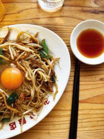 바삭하게 구운 메밀 면과 아삭한 콩나물을 짭조름한 간장 베이스 양념에 볶아낸 히타 야키소바. 모락모락 김이 나는 야키소바 위에 달걀노른자 하나 톡 올려 히타에서 갓 만든 삿포로맥주와 먹는다면 그야말로 환상. 고소한 감칠맛 뒤에 밀려오는 맥주의 청량감은 아직도 잊을 수 없다.