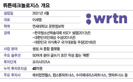 그런데 올해 초 '챗GPT 신드롬'이 불기 훨씬 전부터 생성 AI 기술로 사업을 추진해온 국내 스타트업이 있어 주목된다. 비즈니스 분야 글쓰기 툴 '뤼튼(wrtn)'을 운영하는 뤼튼테크놀로지스다.