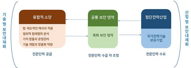 이와 함께 각 산업에 특화한 보안 인력이 산업의 안전망 구축과 중단없는 성장을 목적으로 원활하게 공급될 수 있도록 수요와 연계된 제도적 마련이 함께 진행되어야 한다. 제정된 첨단전략산업과 국가전략기술에 연관된 기업 대상으로 안정적인 보호 체계가 구성될 수 있도록 R&D 지원정책과 함께 보호체계 지원정책이 적용돼야 한다.