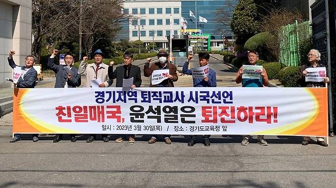 경기도 퇴직 교사들이 윤석열 정부의 대일 외교를 '친일 매국'이라 비판하며 시국선언 대열에 합류했다.