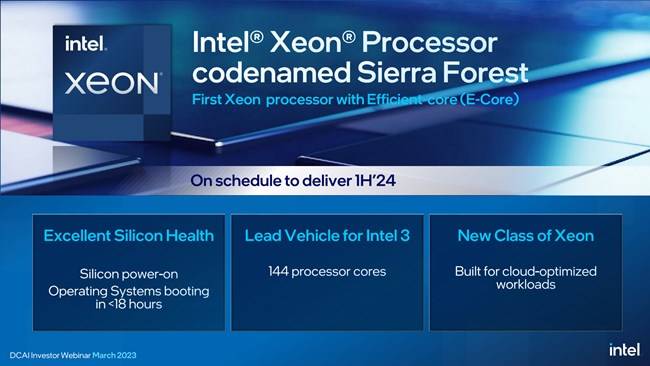 물론 인텔도 여기서 그치지 않고 바로 다음 프로세서를 출시합니다. 6세대 제온 스케일러블 프로세서인 그래나이트 래피즈(Granite Rapids)는 시에라 포레스트 출시 후 2024년에 등장할 계획입니다. 두 프로세서 모두 인텔의 최신 EUV 리소그래피 공정인 인텔 3 공정을 이용해서 제조하기 때문에 코어 숫자가 다 증가할 것으로 보입니다. 다만 그래나이트 래피즈는 고성능이지만 코어 크기가 큰 P 코어를 이용해서 코어 숫자는 시에라 포레스트보다 적을 것으로 보입니다.