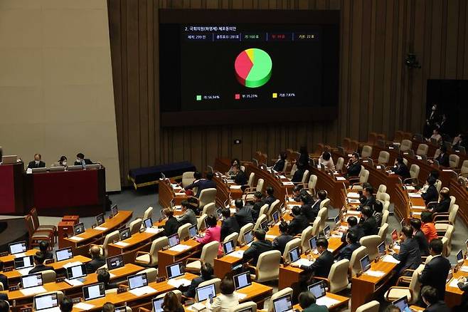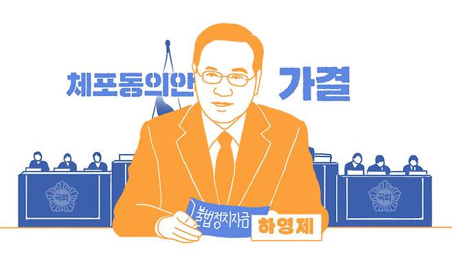 국민의힘 하영제 의원에 대한 체포동의안이 국회에서 가결, 그러니까 통과됐습니다. 하 의원에 대한 구속영장이 청구돼 있는데, 영장실질심사를 받으라는 겁니다. 최근 민주당 소속의 노웅래·이재명 체포동의안이 부결된 것과는 다른 결과가 나왔습니다.