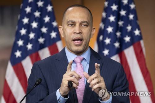 epa10550731 House Minority Leader Hakeem Jeffries holds a news conference during which he discussed House Democrats' proposal on gun safety measures, following a school shooting in Tennessee, on Capitol Hill in Washington, DC, USA, 30 March 2023. EPA/MICHAEL REYNOLDS