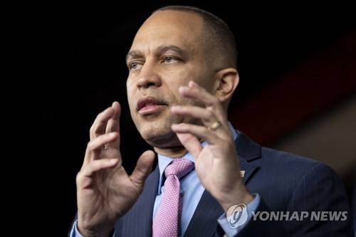 epa10550730 House Minority Leader Hakeem Jeffries holds a news conference during which he discussed House Democrats' proposal on gun safety measures, following a school shooting in Tennessee, on Capitol Hill in Washington, DC, USA, 30 March 2023. EPA/MICHAEL REYNOLDS