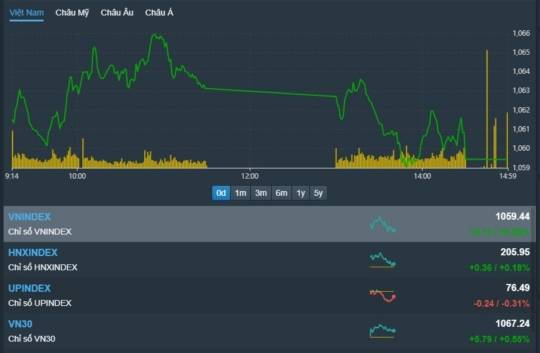 벤치마크 VN지수는 전 거래일에 비해 2.04p(0.19%) 상승한 1,056.33p를 기록했고, 155개 종목이 상승, 166개 종목이 하락했다.