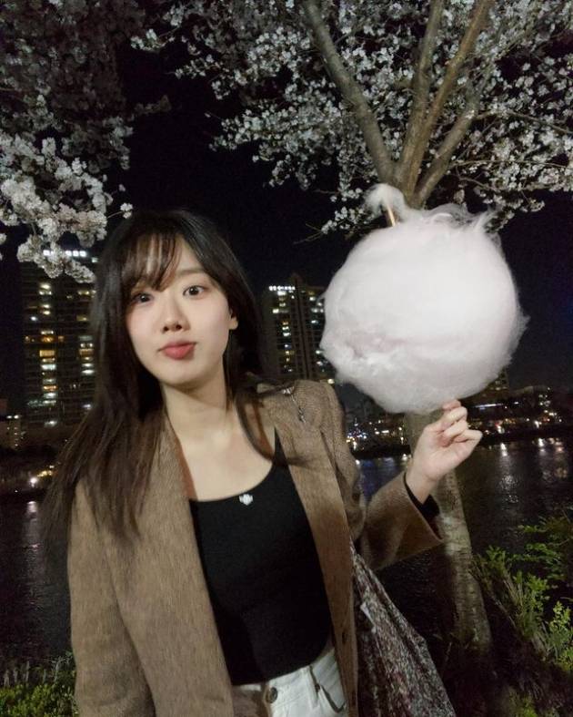 이나은은 석촌 호수에서 벚꽃 놀이를 즐겼다. 그는 환한 미소를 지으며 카메라를 응시하고 있다. 또한 이나은은 대형 솜사탕을 들고 포즈를 취하기도 했다.
