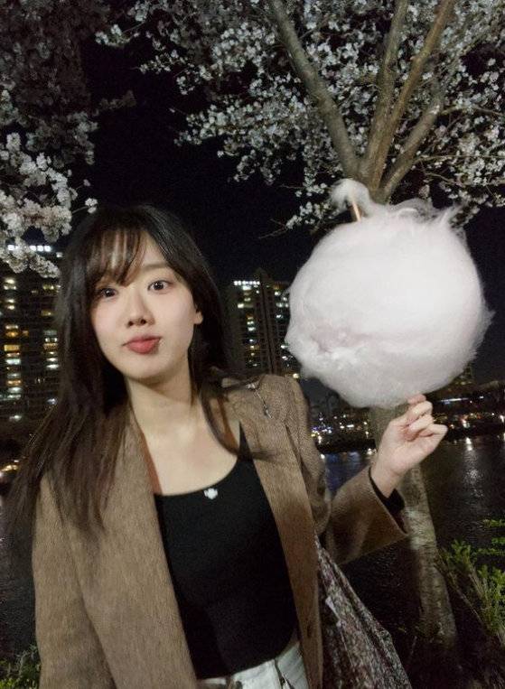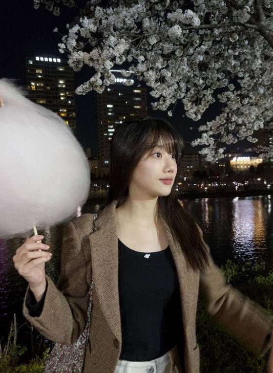 이어 30일에는 벚꽃이 만개한 거리에서 찍은 근황 사진을 게재했다. 사진 속 이나은은 솜사탕을 손에 든 채 환하게 미소 지었다.