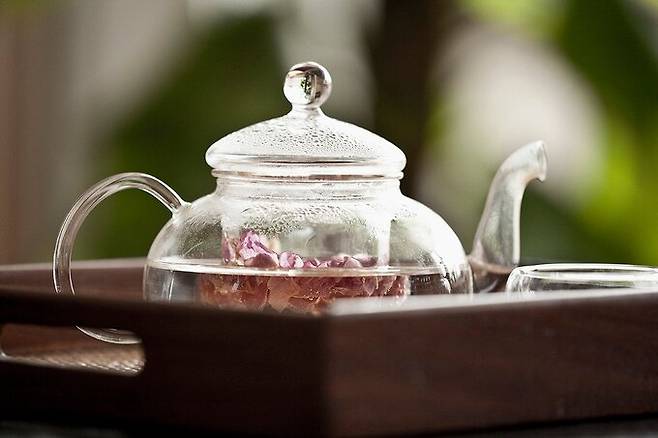 봄꽃 하면 생각나는 음식이 하나 있죠. 바로 화전(花煎)입니다. 찹쌀가루를 반죽해 꽃을 붙여 기름에 지진 떡인데, 예쁘고 맛도 좋아 봄 식탁을 꾸미기에 제격입니다. 화전뿐만 아니라 차(사진)와 술 등 꽃을 이용한 음식은 오래된 우리의 문화이기도 합니다.