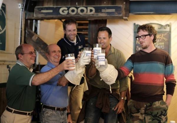 | ▲ 달 운석으로 만든 맥주를 마시는 샘 칼라지오니와 동료들 |