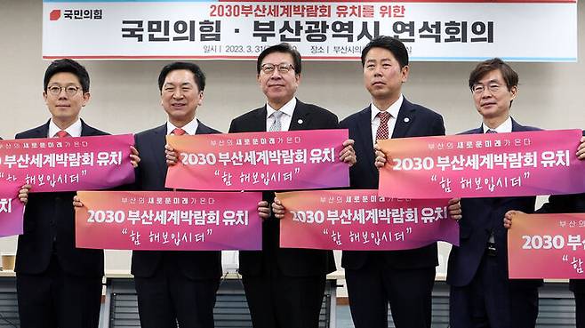 국민의힘 지도부가 2030 세계박람회 부산 유치를 위해 총력 지원에 나서겠다고 강조했습니다.