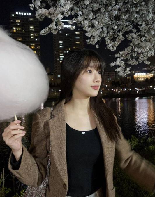 공개된 사진 속 이나은은 벚꽃 나무 아래 서서 솜사탕을 든 채 해맑은 미소를 보이고 있다. 이어진 사진에서 이나은은 솜사탕을 먹으며 윙크 포즈를 취하고 있어 상큼한 매력을 자아낸다.