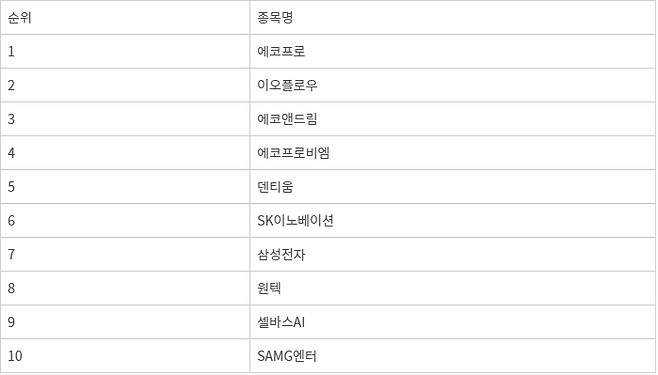 반면 이 시각 수익률 상위 1% 투자자들은 최근 증시에서 2차전지 대장주로 꼽히는 종목을 주로 순매도했다. 에코프로, 이오플로우, 에코앤드림, 에코프로비엠 등 이달 들어 급등한 2차전지주를 순서대로 많이 매도했다. 이달 들어 에코프로와 에코프로비엠이 각 70%, 30% 이상 급등하자 차익실현에 나선 것으로 보인다.