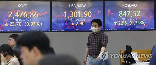 이날 서울 외환시장에서 달러 대비 원화 환율은 전날 종가보다 2.9원 오른 1,301.9원에 장을 마쳤다. 2023.3.31