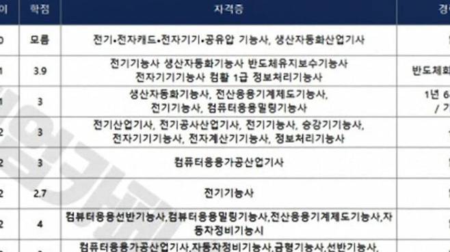 특히 서류 합격자들의 절반 이상이 최소 다섯 개 이상의 자격증을 보유하고 있다고 하네요.