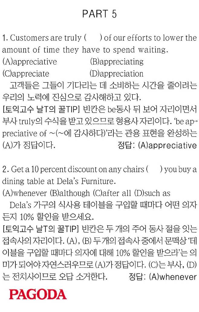 [파고다 강남 1타토익 RC김나래] PART 5