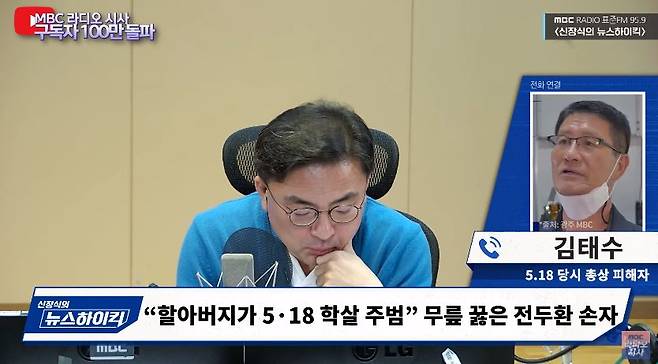 ☏ 진행자 > 앞서서 광주 방문한 전두환 씨 손자 전우원 씨 소식 전해드렸는데요. 오늘 전우원 씨와 직접 만나셨던 분입니다. 김태수 씨 당시 시민군이자 총상 피해자신데요. 전화로 연결해서 오늘 만남에서 어떤 일들이 있었는지 어떤 마음이셨는지 한번 직접 들어보도록 하겠습니다. 김태수 선생님 나와 계시죠?