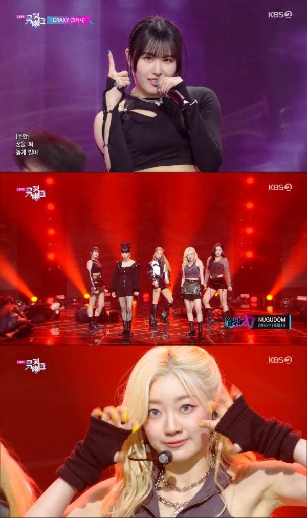 크랙시(우아, 채이, 카린, 혜진, 수안)는 31일 오후 방송된 KBS 2TV ‘뮤직뱅크’에 출연해 네 번째 미니앨범 ‘XX’의 타이틀곡 ‘NUGUDOM (누구덤)’ 무대를 선보였다.