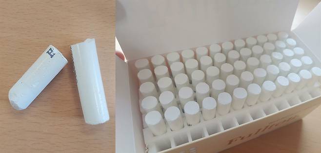 | ▲ 반토막 난 분필과 넉넉한 분필상자 |