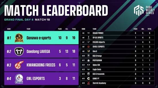 경기 결과, 다나와가 18매치 치킨의 주인이 됐으며, 19점을 획득했다.