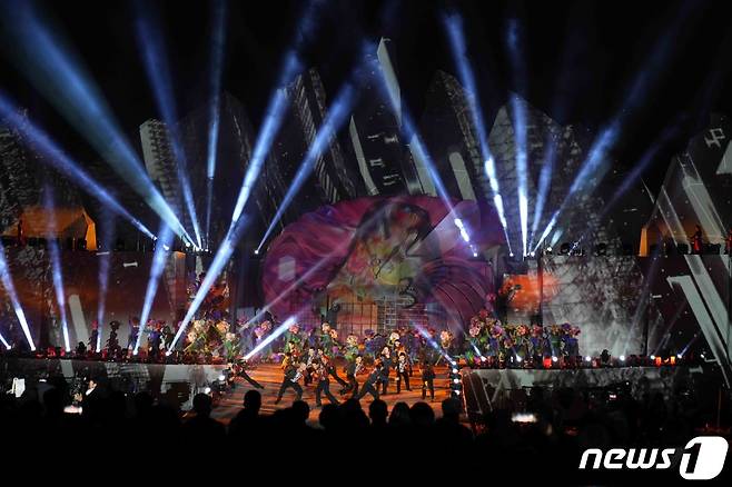 (순천=뉴스1) 전원 기자 = 2023순천만국제정원박람회가 개막한 31일 전남 순천시 동천에 마련된 수상 특설무대에서 개막식 행사가 진행되고 있다.(전남도 제공) 2023.3.31/뉴스1
