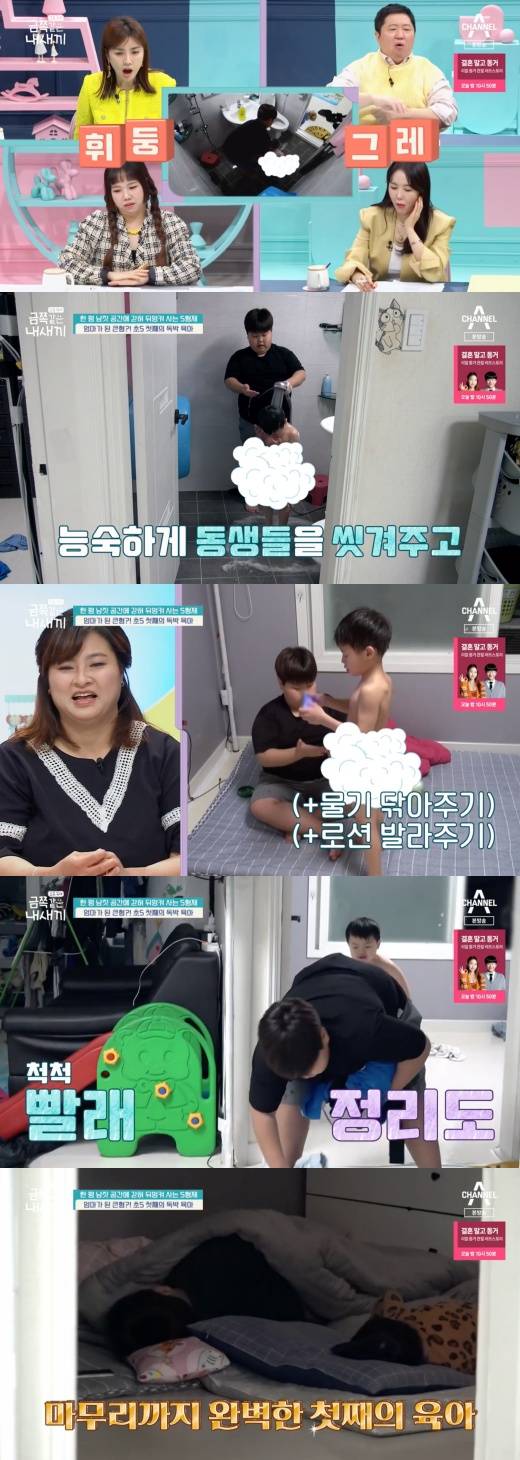 [마이데일리 = 임유리 기자] 5형제 중 첫째인 초등학교 5학년 금쪽이가 동생들을 마치 엄마처럼 돌봐 감탄을 자아냈다.