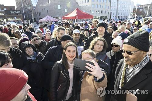 Social Democratic Party SDP chair, Prime Minister Sanna Marin meets voters in her elections rally in Vantaa, Finland, Friday, March 31, 2023. A parliamentary election in Finland on Sunday is shaping up as an extremely close race between three parties as Prime Minister Sanna Marin’s Social Democrats fight to secure a second term running the government. (Vesa Moilanen/Lehtikuva via AP) FINLAND OUT; MANDATORY CREDIT