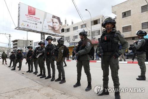 epa10552509 Israeli soldiers take position during a protest to mark the 'Land Day' in Huwara village, near the West Bank city of Nablus, 31 March 2023. Ten Palestinian were wounded during the protest, Palestinian Health Ministry said. The day commemorates the 30 March 1976 events, when marches and a general strike was organized in Arab towns against the Israeli government's decision to expropriate large tracts of Palestinian-owned land for settlement. The annual event calls for the Palestinian right to return to the land they were displaced from after the creation of Israel in 1948. EPA/ALAA BADARNEH