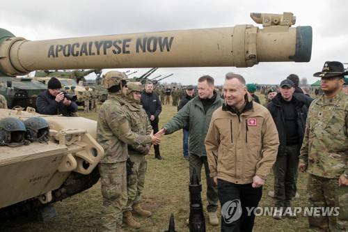 epaselect epa10552406 Polish president Andrzej Duda (C-R) and deputy Prime Minister, Minister of National Defense Mariusz Blaszczak (C-L) visit the Tank Shooting Range and Combat Vehicles in Orzysz, Poland, 31 March 2023. Duda presided over the shooting exercises of the new K2 tanks and K9 howitzers from South Korea. EPA/Tomasz Waszczuk POLAND OUT