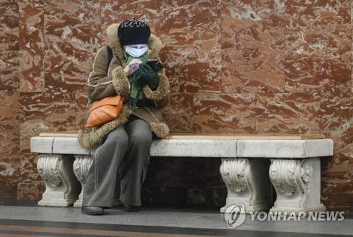 epa10552549 A woman wearing a protective face mask sits on the bench and looks at a mobile device at a metro station in Moscow, Russia, 31 March 2023. According to official information of the Russian government, over the past 24 hours, some 11,065 new cases of COVID-19 infections have been detected, with 1,308 people hospitalized in Russia. EPA/YURI KOCHETKOV