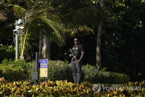 A secret service agent stands guard on the wall surrounding former President Donald Trump's Mar-a-Lago estate a day after he was indicted by a Manhattan grand jury, Thursday, March 30, 2023, in Palm Beach, Fla. (AP Photo/Rebecca Blackwell)