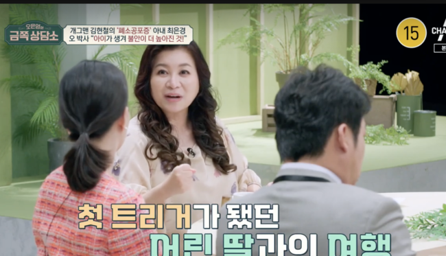 '금쪽상담소'에서 김현철 아내가 심각한 폐소공포증을 고백, 딸 앞에서 잊을 수 없던 순간을 전했다.