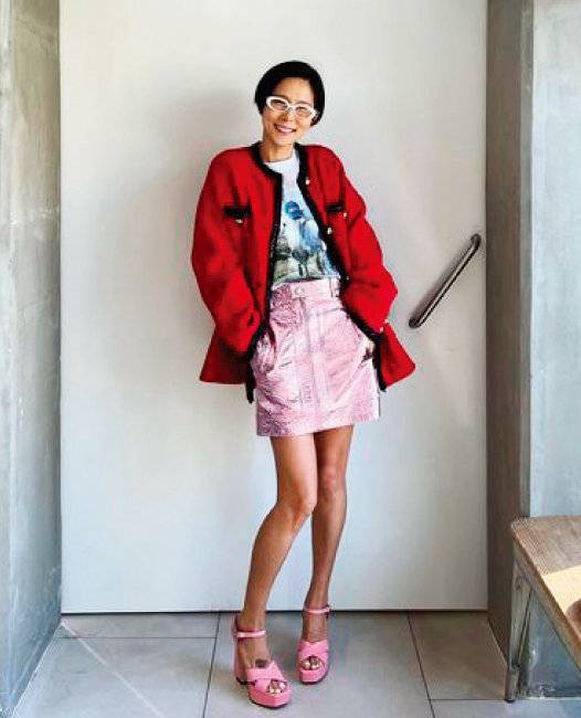 오버핏 트위드재킷에 그래픽 반팔 티셔츠를 이너로 입고, 메탈릭한 느낌의 핑크색 미니스커트로 산뜻한 스프링 룩을 완성했다, 평소 포멀한 무드의 재킷이 부담스러웠다면, 김나영처럼 자유롭게 스타일링해보자. 오히려 그게 더 스타일리시하다.