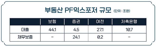 이 표의 왼쪽에 있는 금융기관에는 은행은 물론 보험사, 증권사, 카드사, 저축은행이 모두 포함돼 있습니다. 문제는 표 오른쪽에 있는 시행사가 부동산 개발에 실패해 돈을 갚지 못하게 될 때 발생합니다. 당연히 돈을 빌려준 금융기관들이 바로 타격을 입게 됩니다.