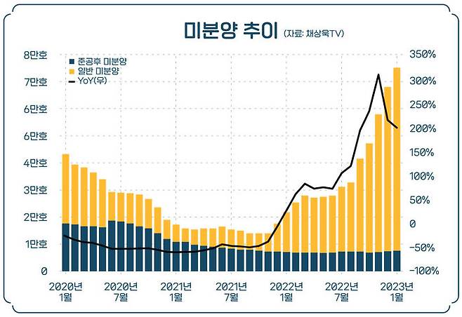 지난해 11월, 원희룡 국토부 장관이 "20년 장기 평균 미분양이 6만 2천 호다" 이러면서 그게 기준이 됐는데, 그다음 달인 12월에 바로 그 기준을 넘어버렸습니다. 그랬더니 "악성 미분양이라고 하는 건 준공 후 미분양이다"라고 하면서 그건 안정적으로 관리되고 있기 때문에 실질적으로 큰 문제는 없다고 했습니다. 관리 포인트를 준공 후 미분양으로 넘겼거든요.